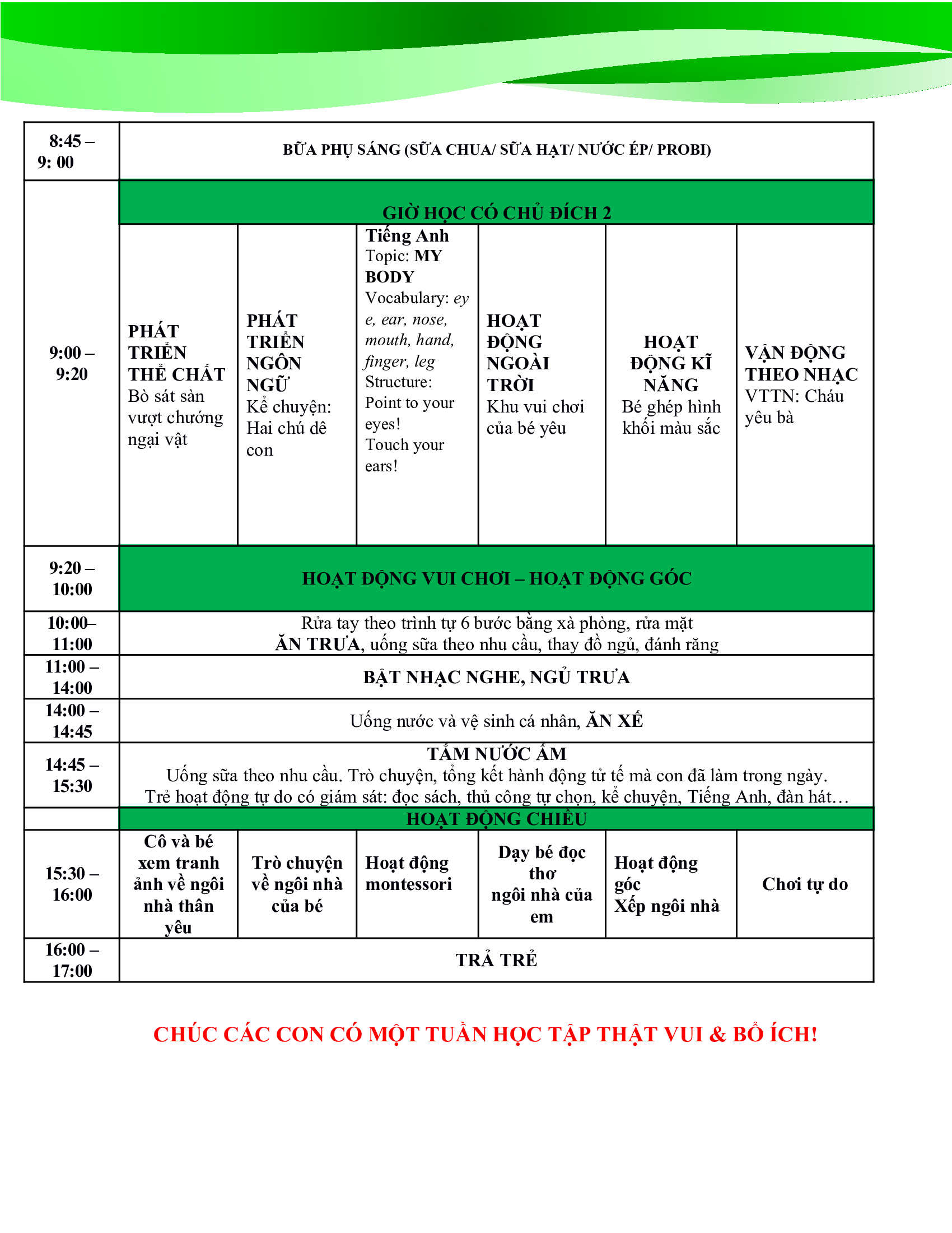 Thời Khoá Biểu mới