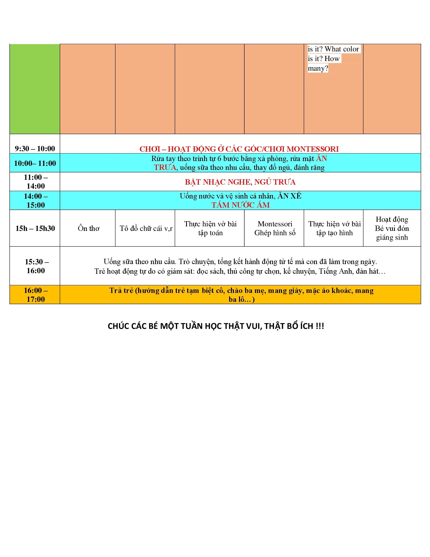 Thời khóa biểu lớp Happy 1 Tuần 3